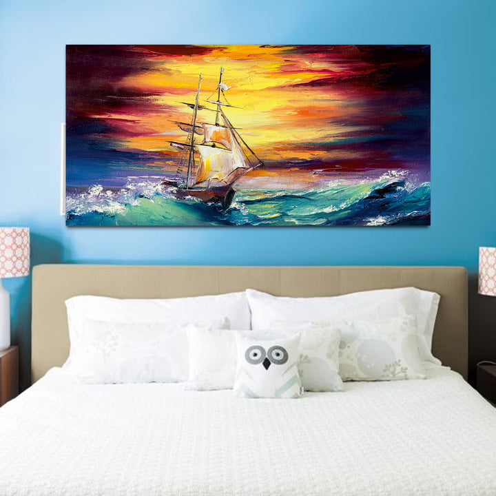 The painting captures a fleeting moment of tranquility and introspection, inviting the viewer to immerse themselves in the beauty of nature's timeless dance. Whether adorning the walls of a cozy living room or a serene waterfront retreat, this Sunset with Boat under River Canvas Wall Painting serves as a poignant reminder of the awe-inspiring beauty that surrounds us, if only we take a moment to pause and appreciate.