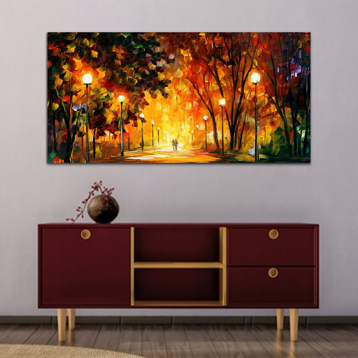 Beautiful Colorful Street Road with Tree Canvas Wall Painting