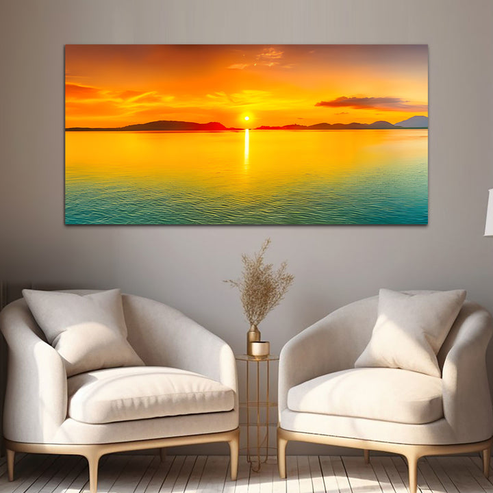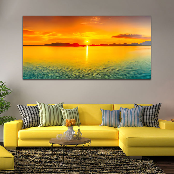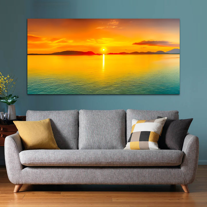 Beautiful Sunrises with Blue and Yellow Sea Wall Painting