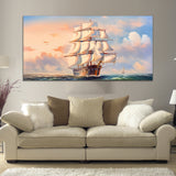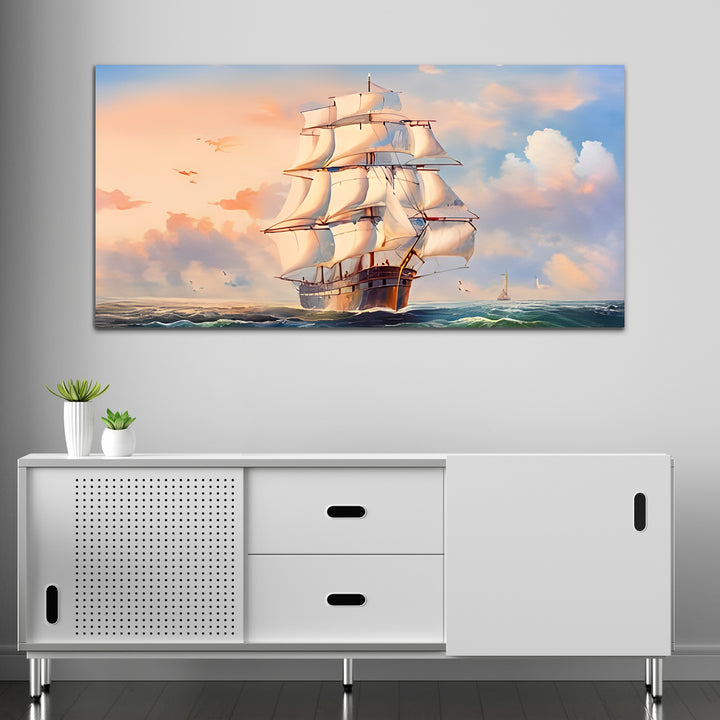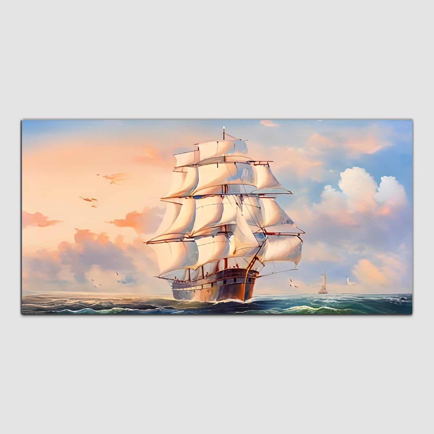 White & Green Sailing Boat Beautiful Canvas Art Wall Painting