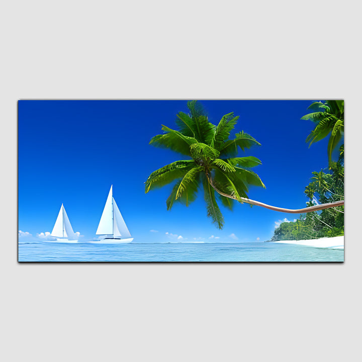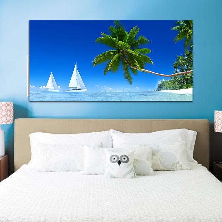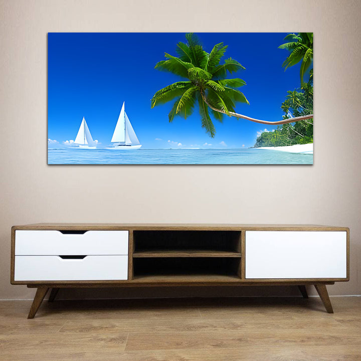Beautiful Beach with Boat under Sea Canvas Wall Painting