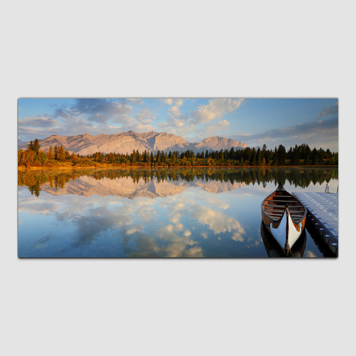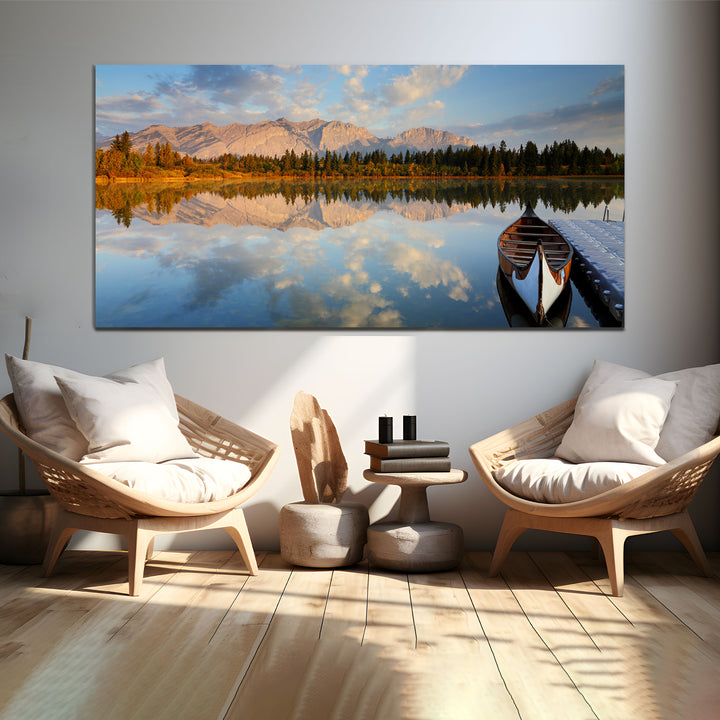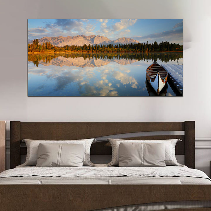 The canvas wall painting depicting a breathtaking mountain landscape overlooking a tranquil lake. Vibrant hues blend seamlessly to evoke the awe-inspiring beauty of the natural world, inviting viewers to immerse themselves in the peaceful ambiance of the scene. With each brushstroke, the rugged grandeur of the mountains and the serene calm of the reflective waters come to life, infusing any space with a sense of tranquility and wonderThis painting are perfectally used for living room,bedroom,kitchen, office, Hotel, dining room, office.