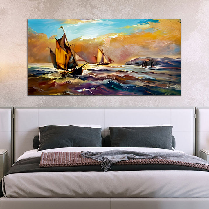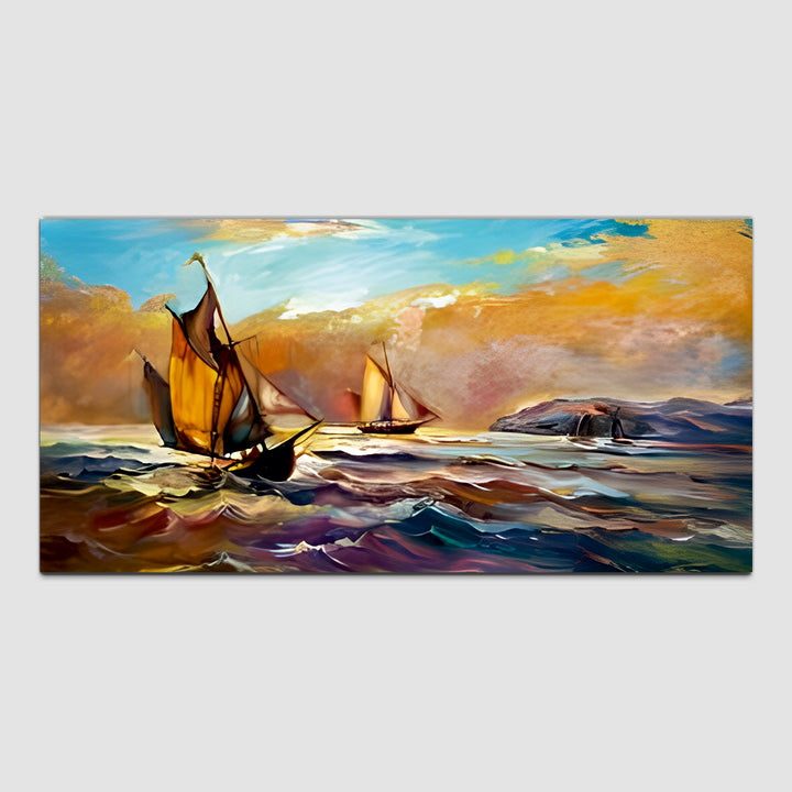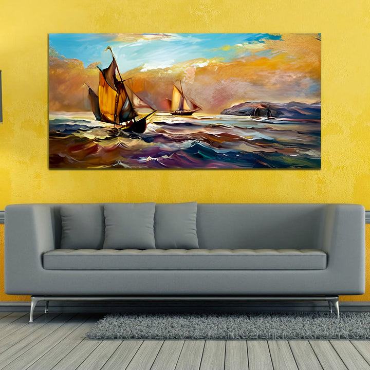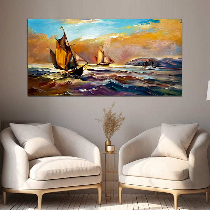 Boat under Water with Blue Sky Abstract Wall Painting & Arts