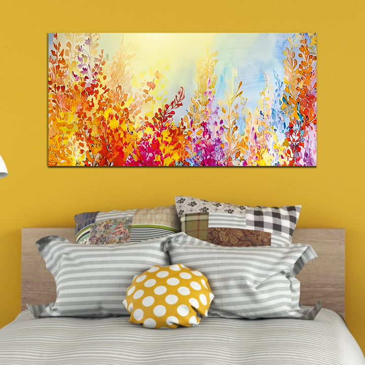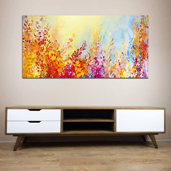 This canvas wall painting brings the warmth of a sunlit afternoon into your space with its portrayal of a majestic yellow tree. Bathed in the golden glow of sunlight, the tree's branches reach out in a graceful dance, adorned with leaves that shimmer like drops of sunlight. The canvas comes alive with a vibrant energy, capturing the essence of nature's beauty in every stroke. As the sunlight filters through the canopy, it creates intricate patterns of light and shadow, adding depth and dimension to the scene.