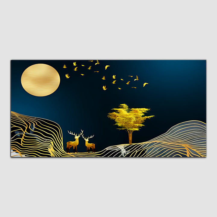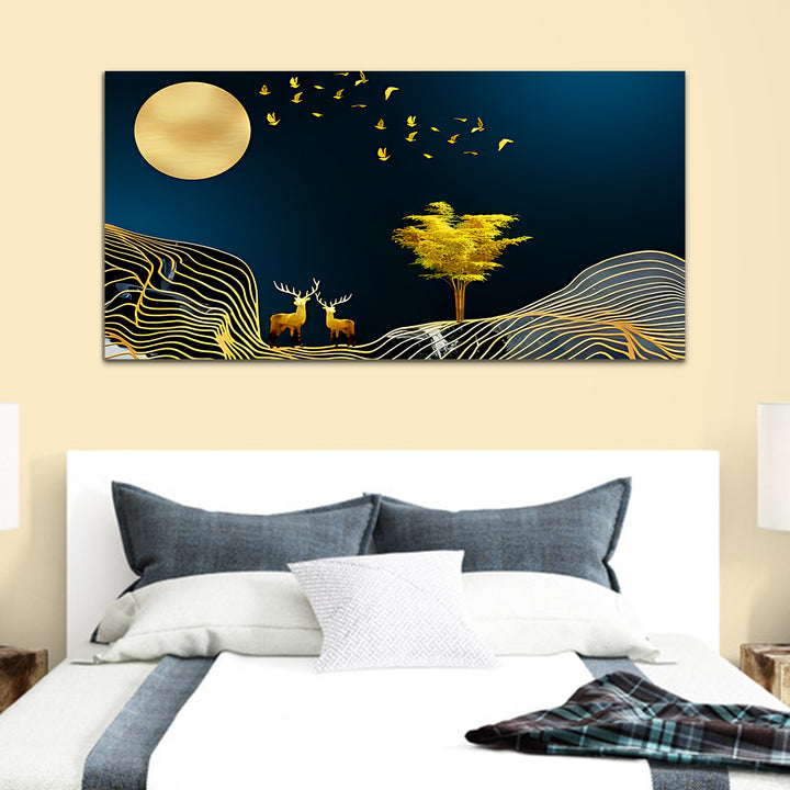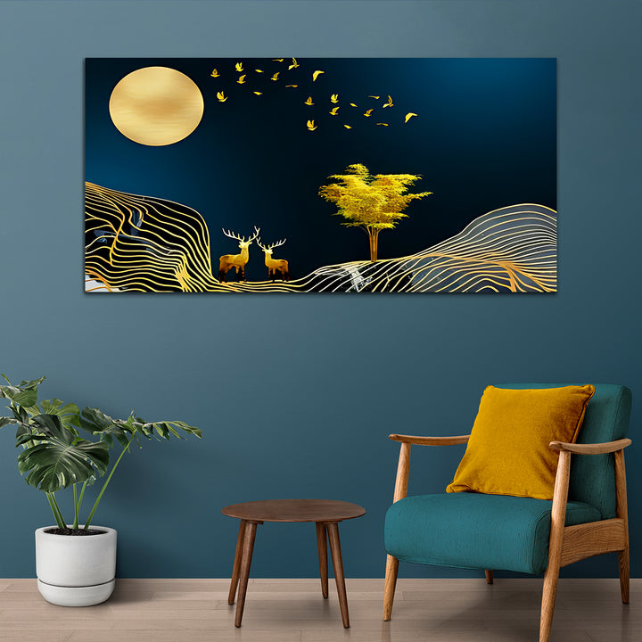This stunning canvas wall painting brings the warmth of a sunlit afternoon into your space with its portrayal of a majestic yellow tree. Bathed in the golden glow of sunlight, the tree's branches reach out in a graceful dance, adorned with leaves that shimmer like drops of sunlight. The canvas comes alive with a vibrant energy, capturing the essence of nature's beauty in every stroke. As the sunlight filters through the canopy, it creates intricate patterns of light and shadow, adding depth and dimension to the scene.