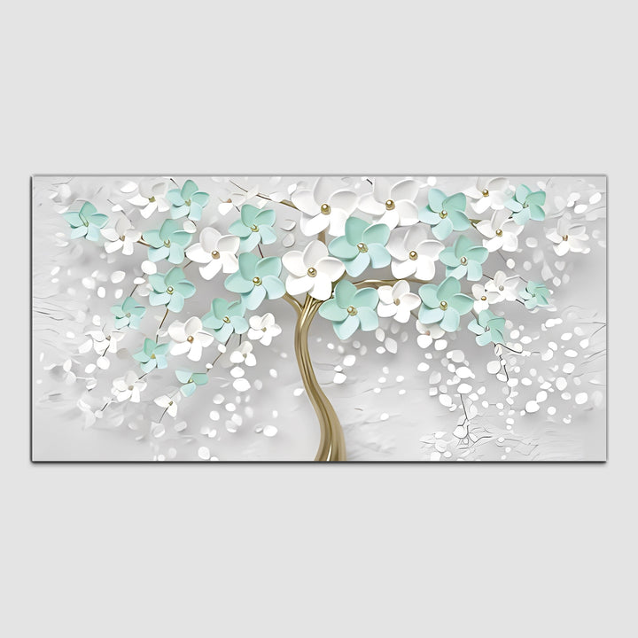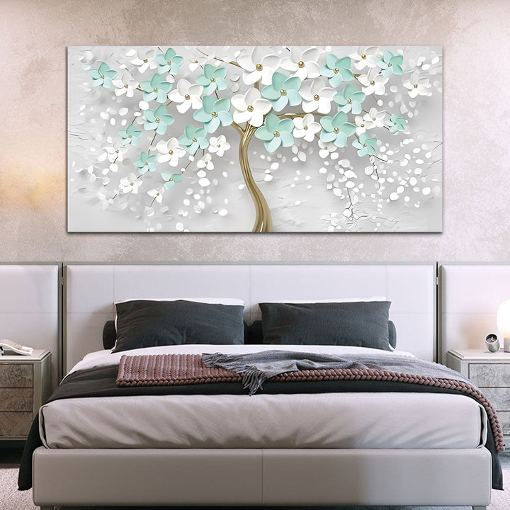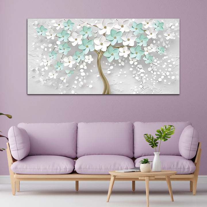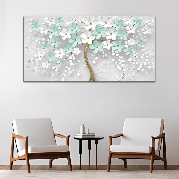 Beautiful White and Blue Flower Tree Canvas Wall Painting