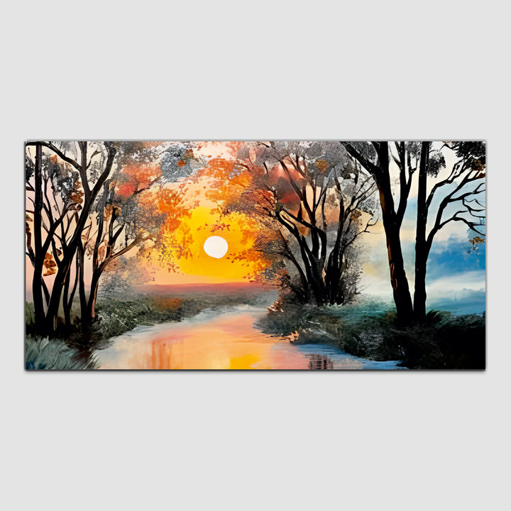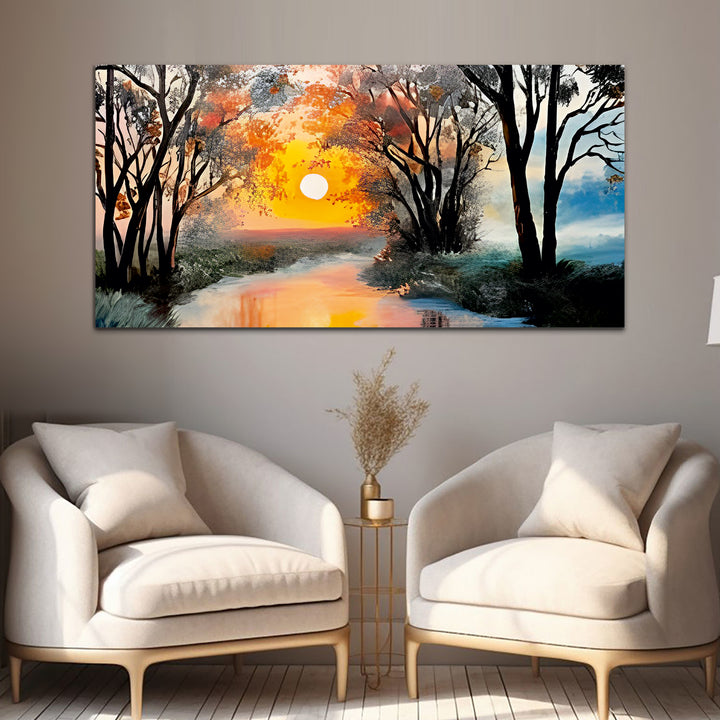 Beautiful Forest Tree with Sunrise Canvas Wall Painting