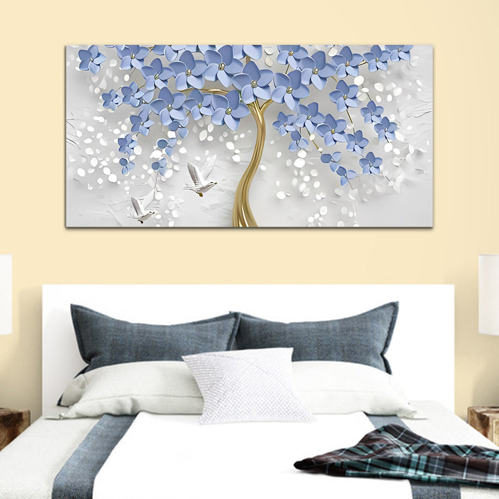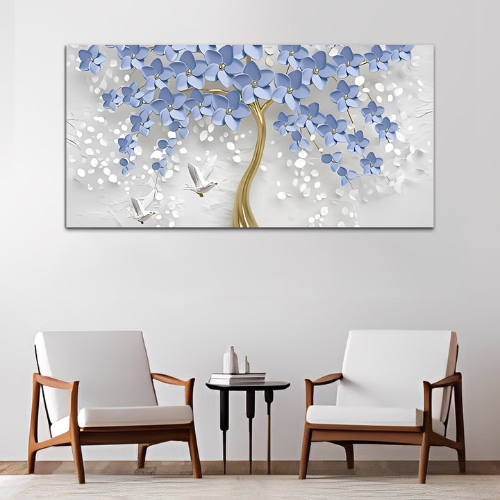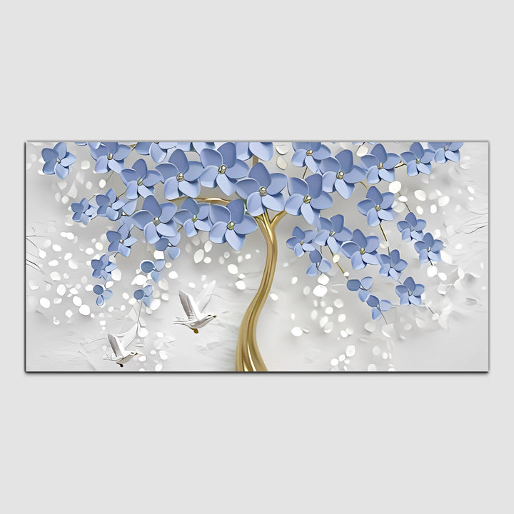 Beautiful Tree with Blue Flowers Canvas Wall Painting