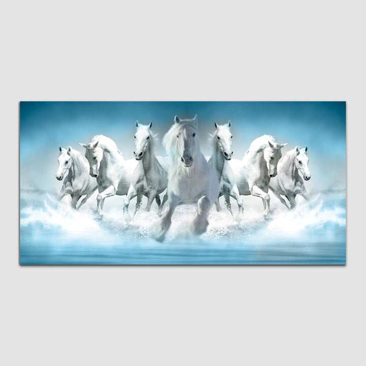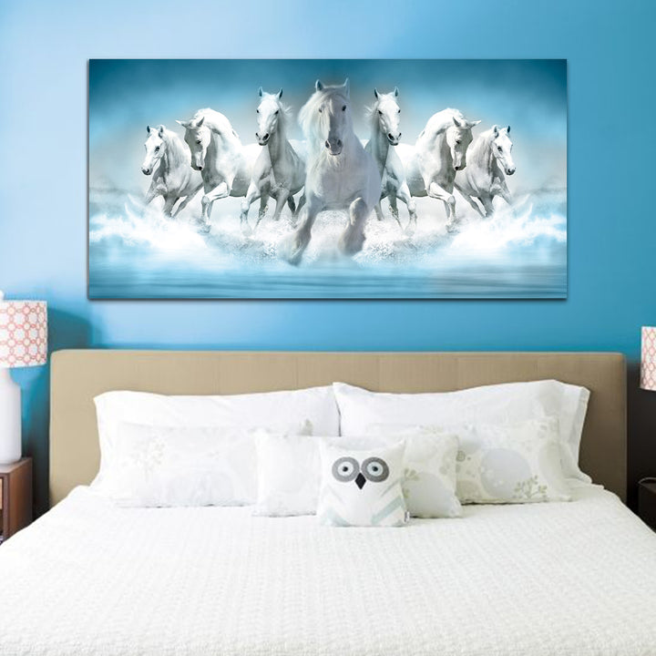 A running horse wall painting captures the essence of freedom, strength, and grace in motion. The scene unfolds with dynamic energy as the horse gallops across the canvas, its muscles rippling with power and determination. Each stroke of the artist's brush brings the majestic creature to life, conveying a sense of fluidity and speed. The horse's mane billows behind it like a banner unfurled in the wind, adding to the sense of movement and vitality. Its hooves kick up dust and dirt, leaving a trail of swirling particles in its wake. The background may be a sweeping landscape, suggesting vast open spaces and endless possibilities.