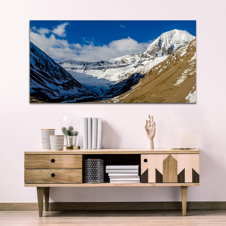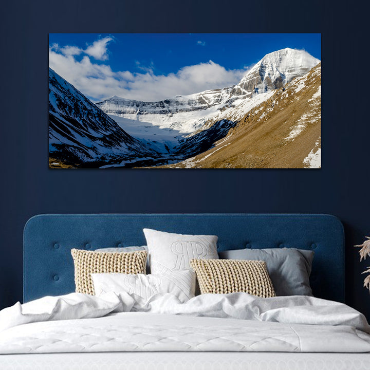 The canvas wall painting depicting a breathtaking mountain landscape overlooking a tranquil lake. Vibrant hues blend seamlessly to evoke the awe-inspiring beauty of the natural world, inviting viewers to immerse themselves in the peaceful ambiance of the scene. With each brushstroke, the rugged grandeur of the mountains and the serene calm of the reflective waters come to life, infusing any space with a sense of tranquility and wonderThis painting are perfectally used for living room,bedroom,kitchen, office, Hotel, dining room, office.