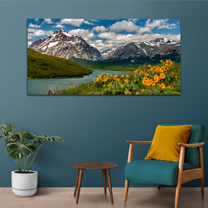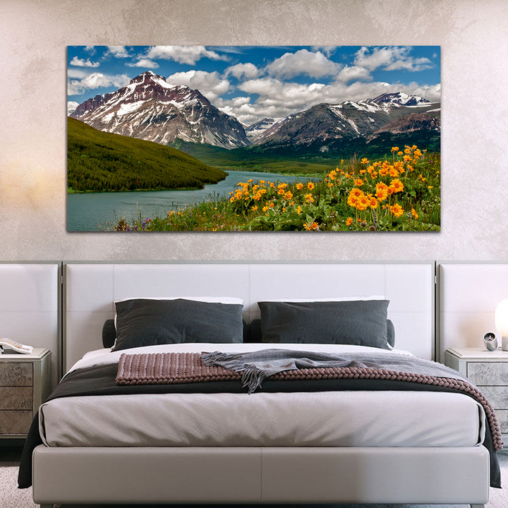 Beautiful Mountain with Colorful Flower Canvas Wall Painting