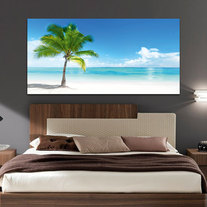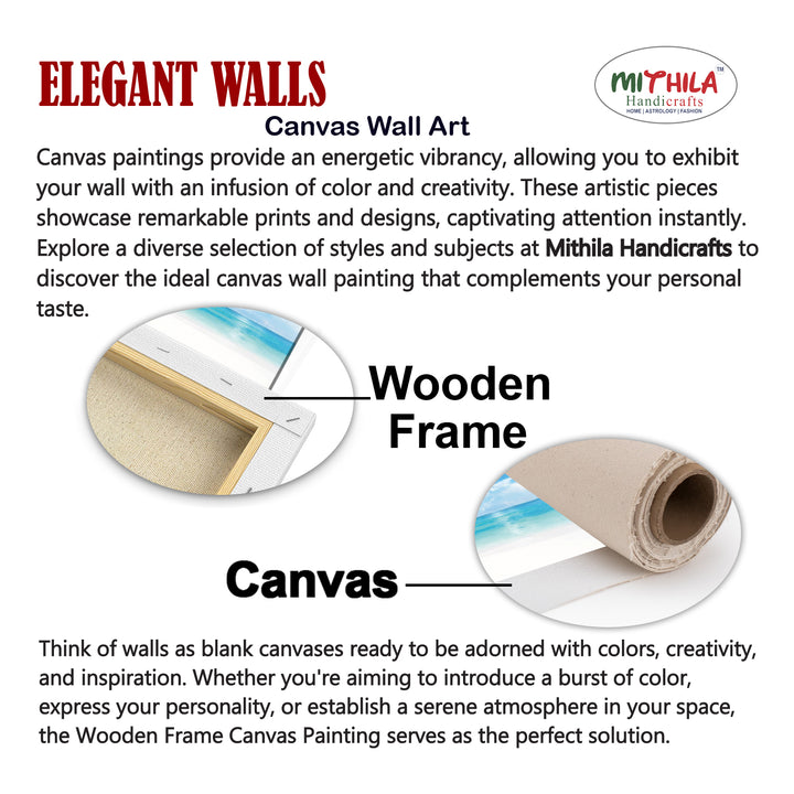 The canvas comes alive with a vivid palette of oceanic blues, ranging from the deepest indigo to the softest cerulean, mirroring the ever-changing hues of the sea. In the foreground, a charming wooden boat bobs gently upon the waves, its weathered sails billowing in the gentle breeze, a silent sentinel amidst the vast expanse of the sea.This painting are perfectally used for living room, bedroom, kitchen, office, Hotel, dining room, office.