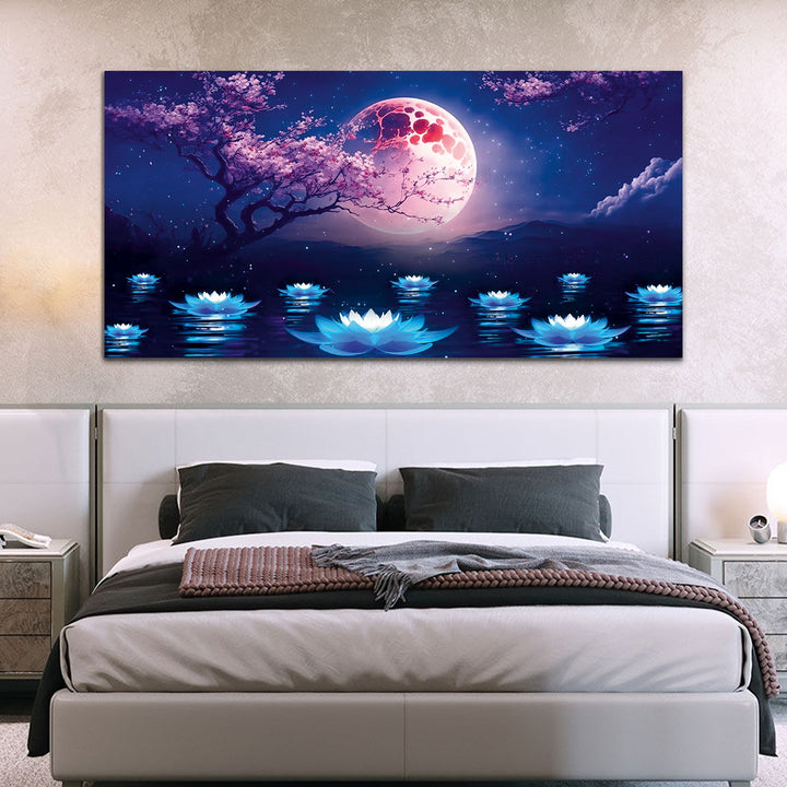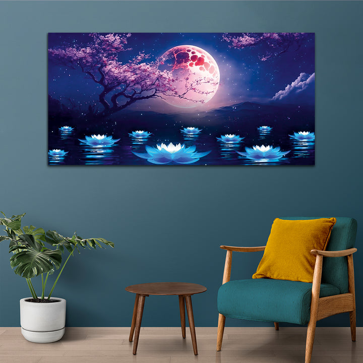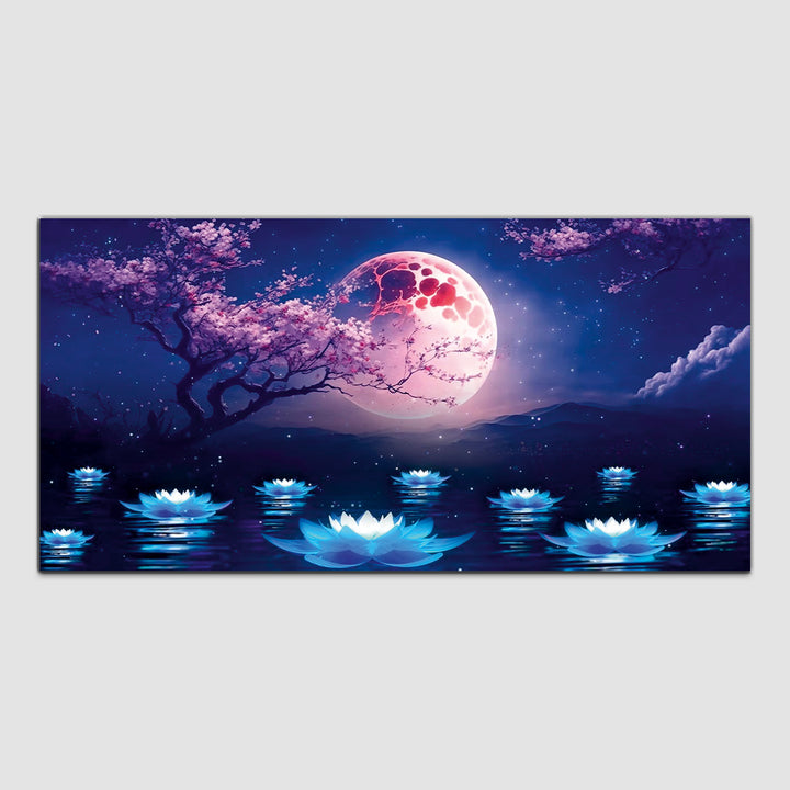 Pink Tree with Dark Night and River Canvas Wall Painting