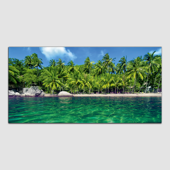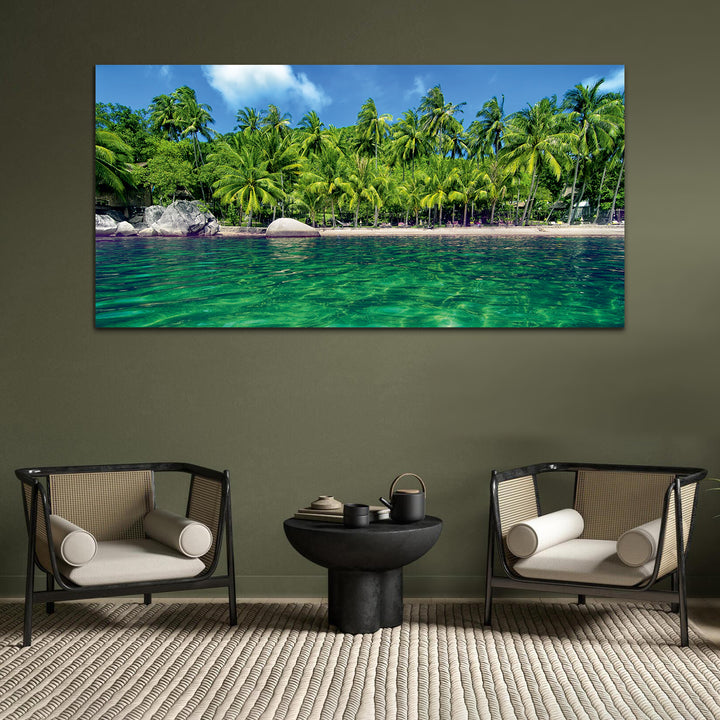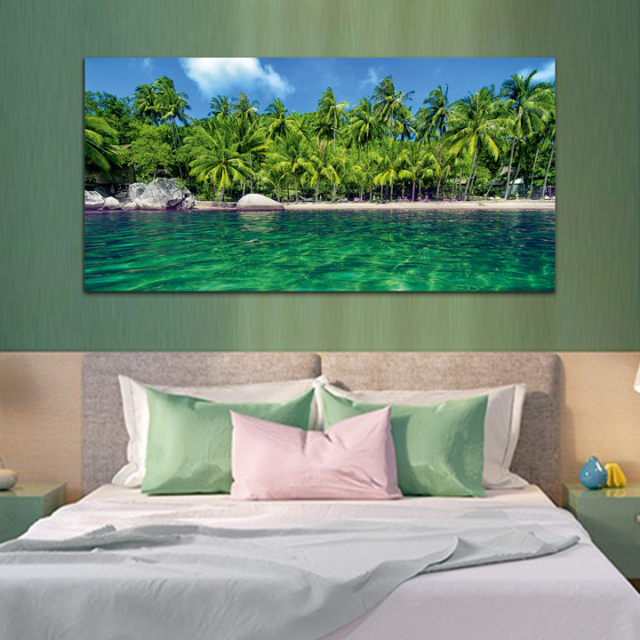 Palm Trees, Water, Beach Canvas Wall Painting