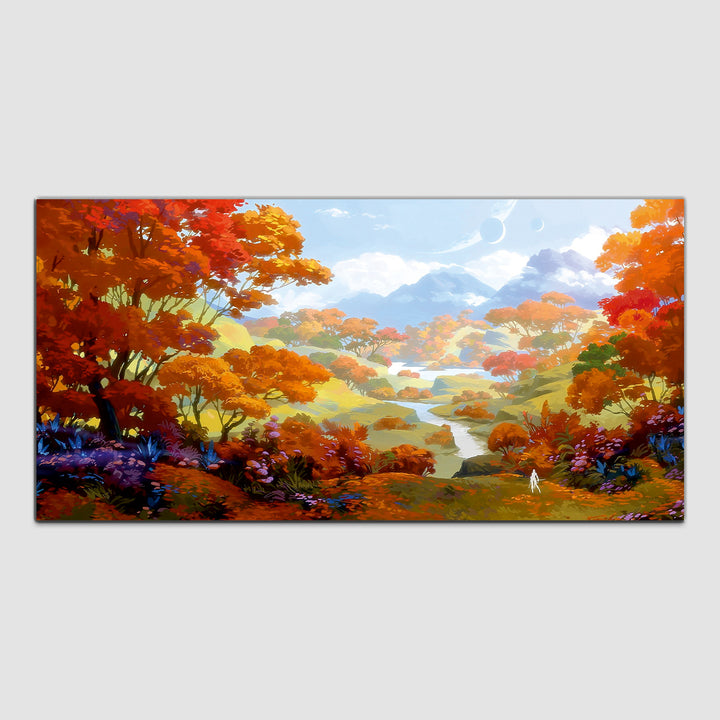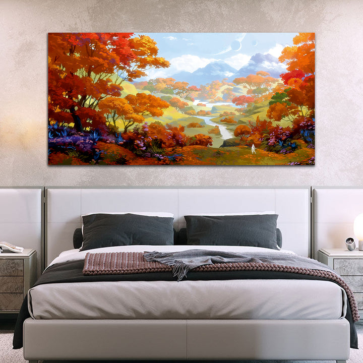 Flowers & Mountain Canvas Wall Painting