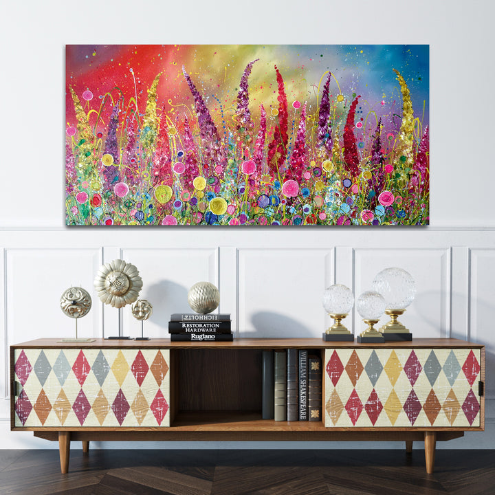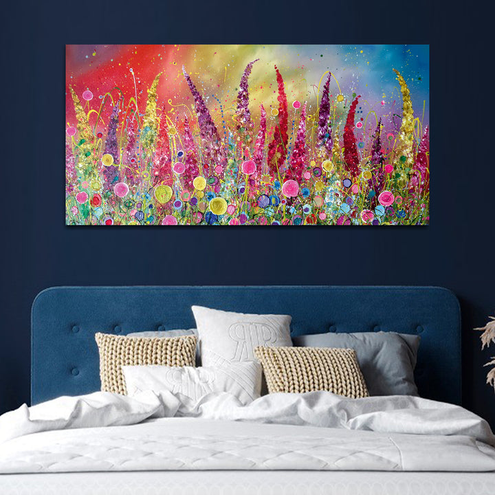 A colorful abstract flower canvas wall painting and arts encompass a wide range of vibrant and dynamic artworks that defy traditional representations and embrace creative expression through shapes, colors, lines, and textures. These paintings often feature bold and contrasting hues, such as bright reds, blues, yellows, greens, oranges, and purples, creating a visually stimulating and captivating composition.This painting are perfectally used for living room, bedroom, kitchen, office, Hotel, dining room, office.