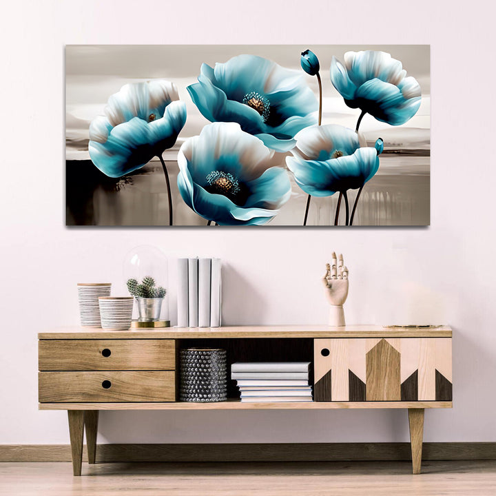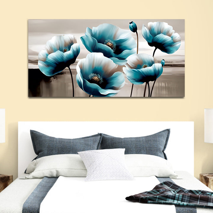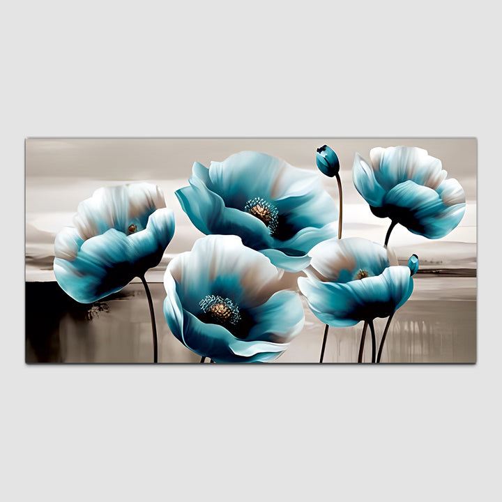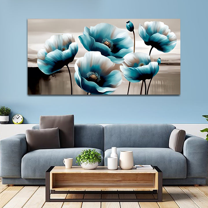 Premium White and Blue Flower Canvas Wall Painting