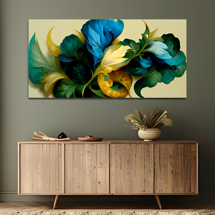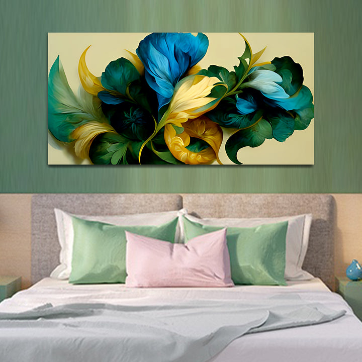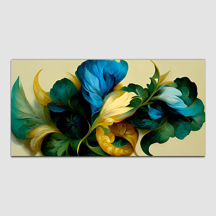 Blue and yellow flower canvas wall painting is a sophisticated and elegant artwork that combines the timeless beauty of flowers with a harmonious color palette. The painting typically features a bouquet or arrangement of flowers in shades of blue and yellow, creating a striking visual contrast and a sense of balance.