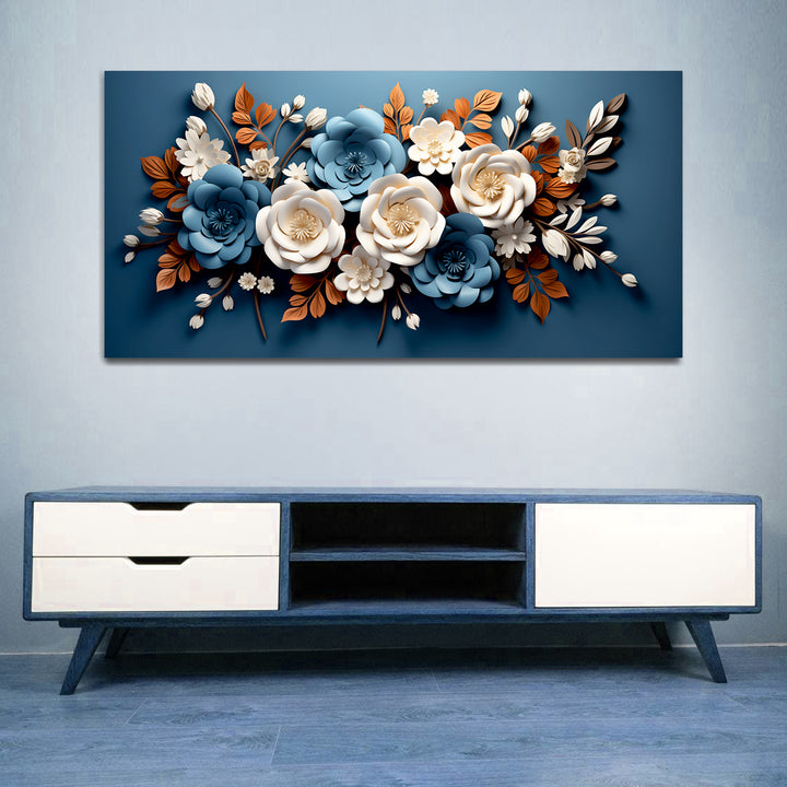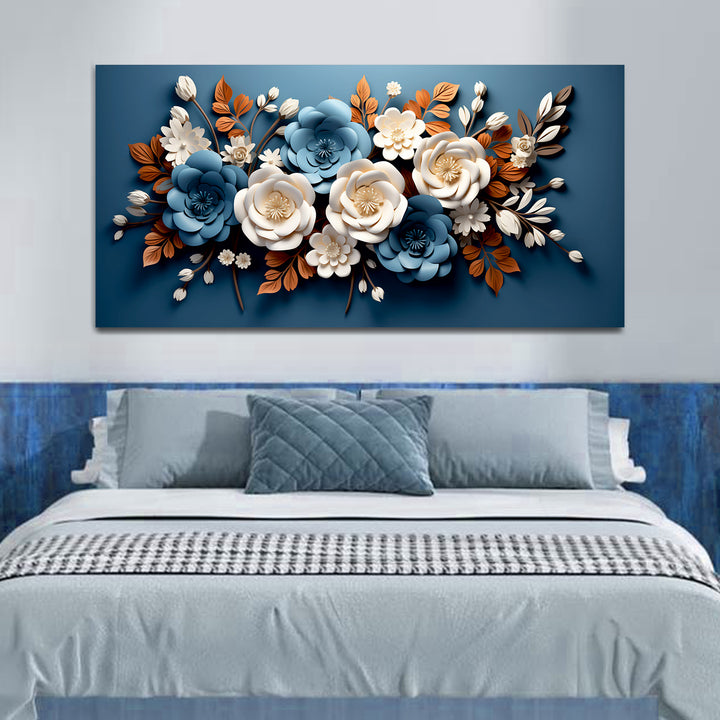 Beautiful colorful Flower Canvas Wall Painting and Arts can be described as a vibrant and lively depiction of various flowers in full bloom. Picture a canvas filled with a riot of colors, showcasing a garden or field of flowers in their natural beauty.The painting features a diverse array of flowers, from delicate roses in shades of pink, red, and white to cheerful sunflowers with their bright yellow petals. Other blooms like tulips, daisies, lilies, and peonies add a mix of colors such as purple, orange, blue, and cream, creating a harmonious and eye-catching composition.