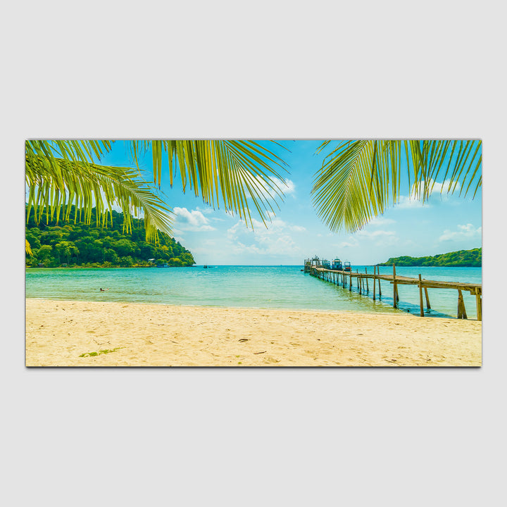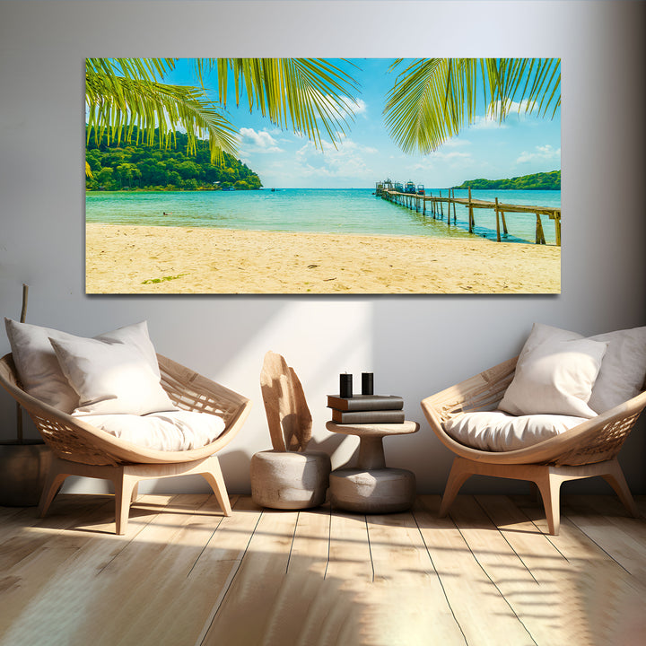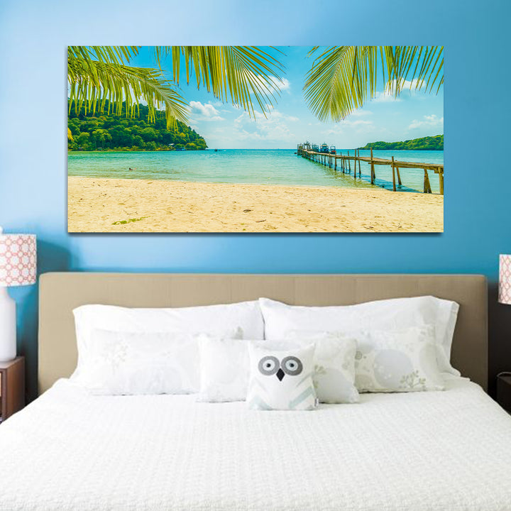 Beautiful Beach with Blue Sky and Sea Canvas Wall Painting