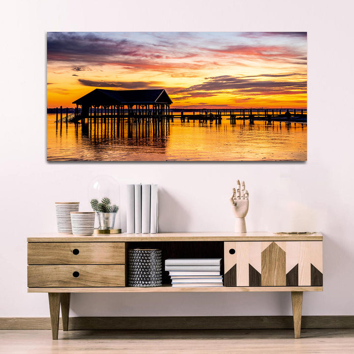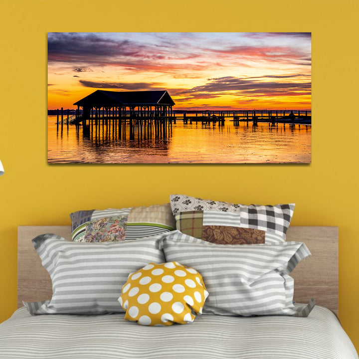 Beautiful River with Sunset Canvas Wall Painting & Arts