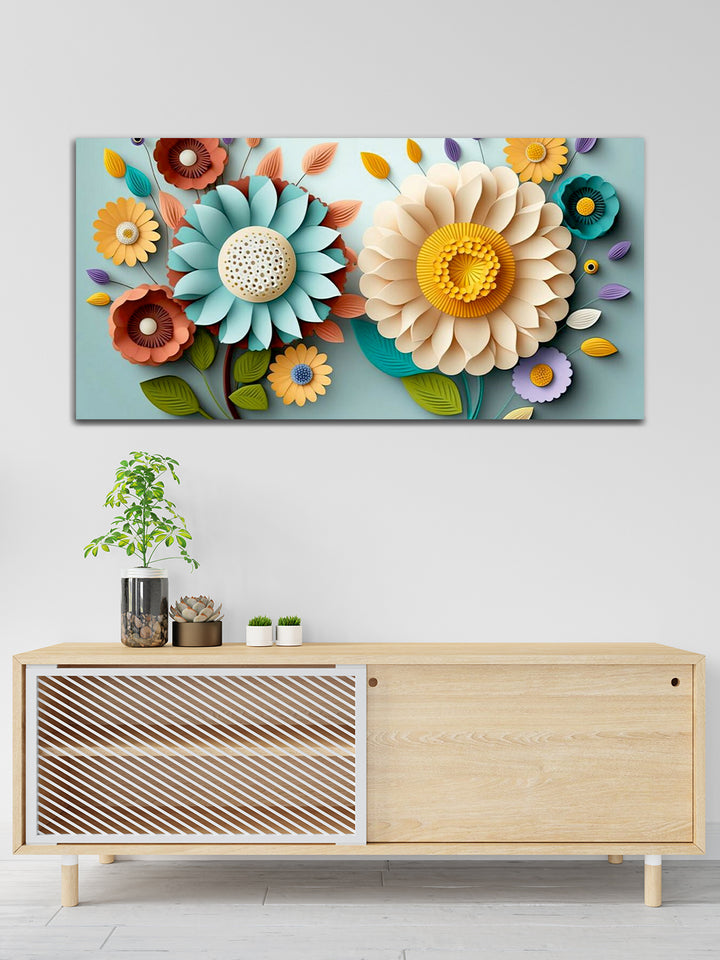 A beautiful flower canvas wall painting is a work of art that captures the elegance and allure of flowers in a captivating and enchanting manner. These paintings often showcase a delicate balance of colors, shapes, and textures, creating a harmonious composition that celebrates the beauty of nature's blooms.The choice of flowers, color palette, and overall arrangement play a significant role in defining the mood and atmosphere of the artwork. From vibrant and cheerful floral arrangements to serene and tranquil scenes, beautiful flower canvas wall paintings can complement any decor style and evoke a range of emotions.