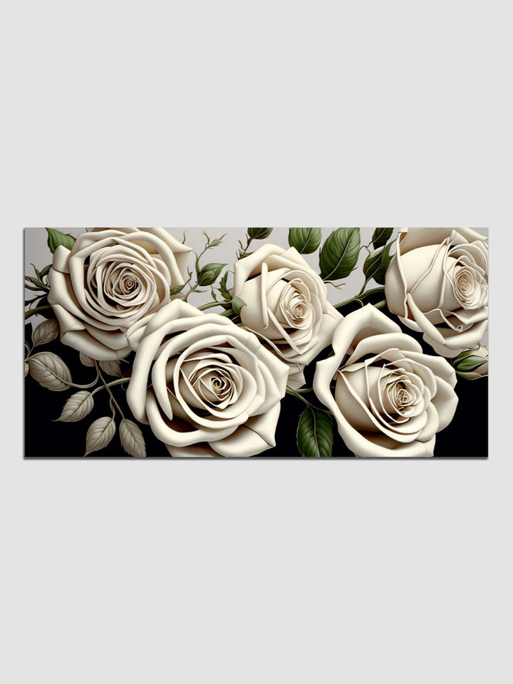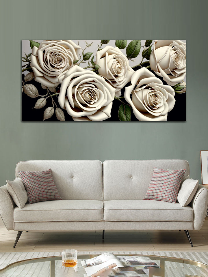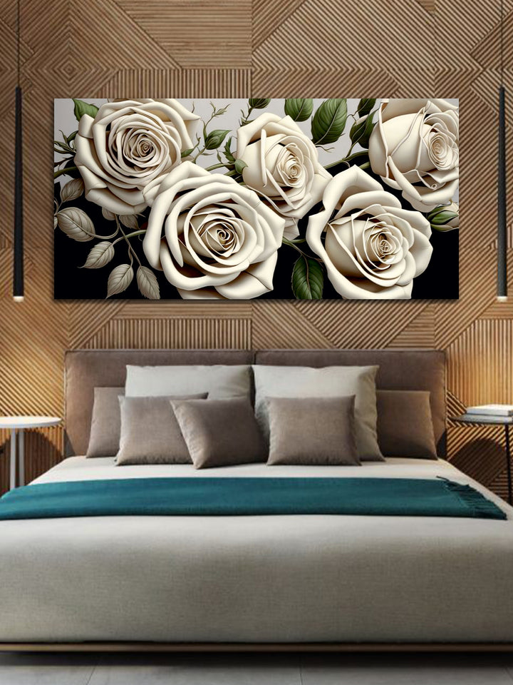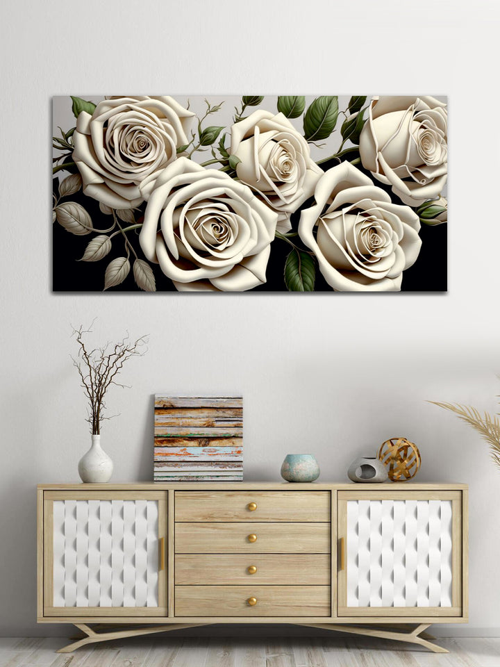 A white rose canvas wall painting is a timeless and elegant representation of one of nature's most beloved flowers. White roses are often associated with purity, innocence, and love, making them a popular subject in art, especially for romantic and peaceful settings.In a white rose canvas wall painting, the artist skillfully captures the delicate beauty of the rose petals, showcasing their soft texture, subtle curves, and intricate details. The choice of a white color palette enhances the purity and simplicity of the rose, highlighting its natural elegance and grace.